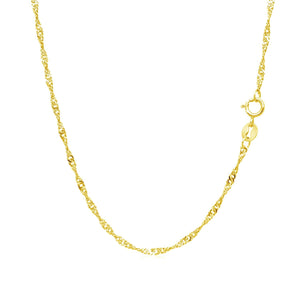 This Singapore chain comes in 10k yellow gold and has a width of 1.5 millimeters.