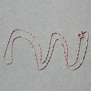 This classic box chain comes in 14k rose gold and has a width of 0.45 millimeters.