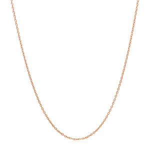This oval cable link chain comes in 14k rose gold and has a width of 0.97 millimeters.