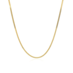 This gourmette chain comes in 14k yellow gold and has a width of 1.5 millimeters.