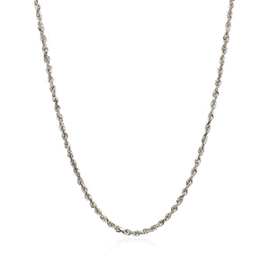 This solid diamond cut rope chain comes in 14k white gold and has a width of 2.0 millimeters.