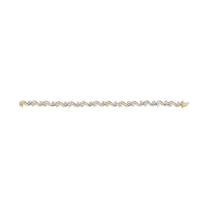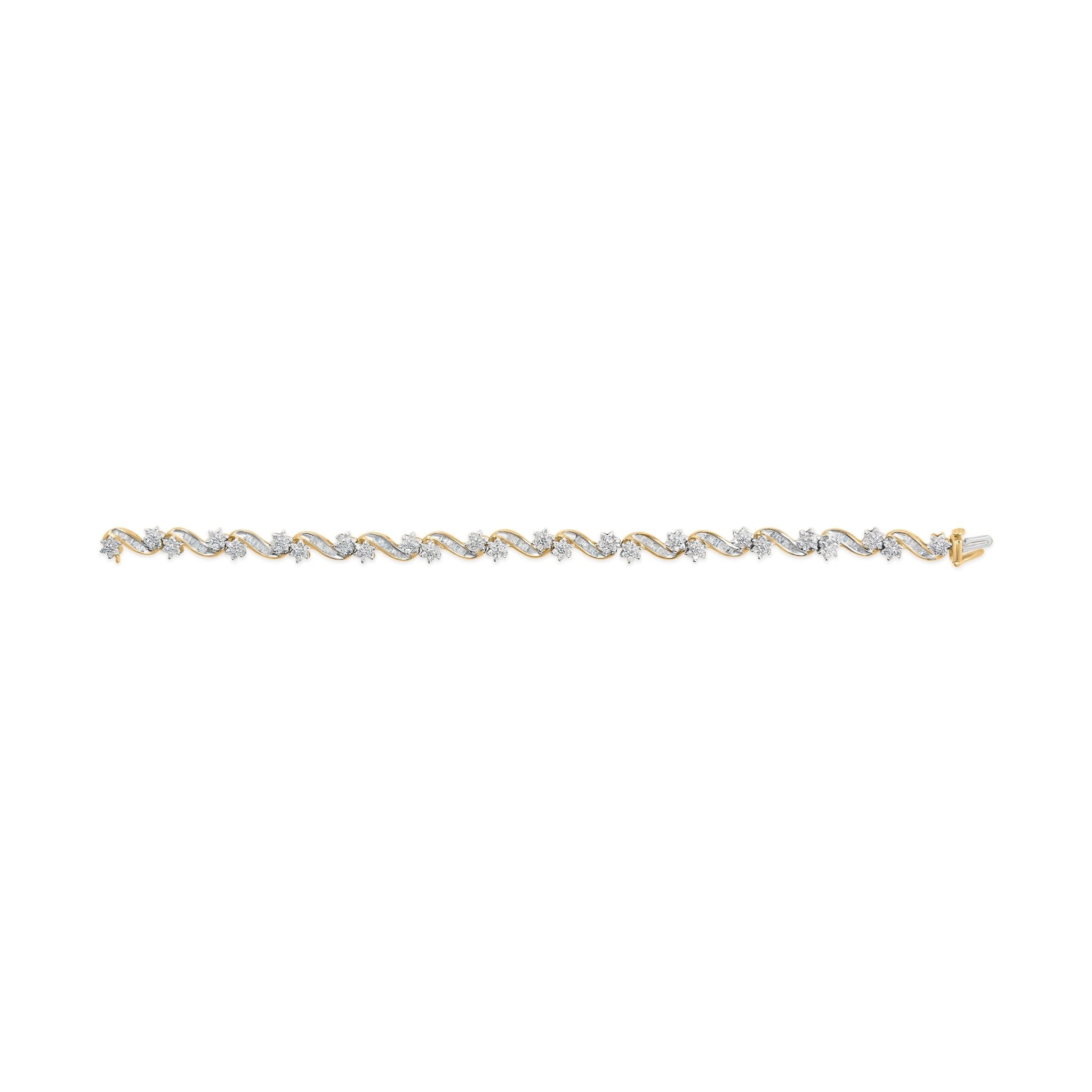 10k Yellow Gold 3.00 Cttw Round-Cut and Baguette-Cut Floral Link 7.25" Bracelet (I-J Color, I1-I2 Clarity)