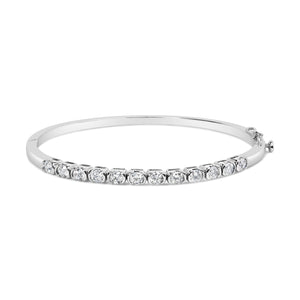 Enter a world of timeless elegance with our exquisite Diamond Floral Cluster Bangle Bracelet. Crafted from lustrous 14K white gold, this bracelet exudes sophistication and grace. Adorned with 12 natural round diamonds totaling 1 7/8 carats, each diamond is meticulously set in a semi-bezel setting, forming a captivating floral cluster design. The brilliance of the H-I color diamonds, coupled with their SI1-SI2 clarity, ensures a mesmerizing sparkle that catches the eye with every movement. Designed to fit wrists up to 7.25 inches, this classic round diamond bangle bracelet is a symbol of refined beauty and enduring style. Elevate your ensemble with the allure of diamonds and embrace the timeless sophistication of this exquisite piece.