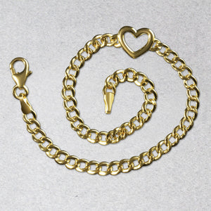 A single polished heart adorns lovely curb chain in this exquisite 14k yellow gold bracelet. Bracelet is 7 inches long and closes with a lobster clasp.