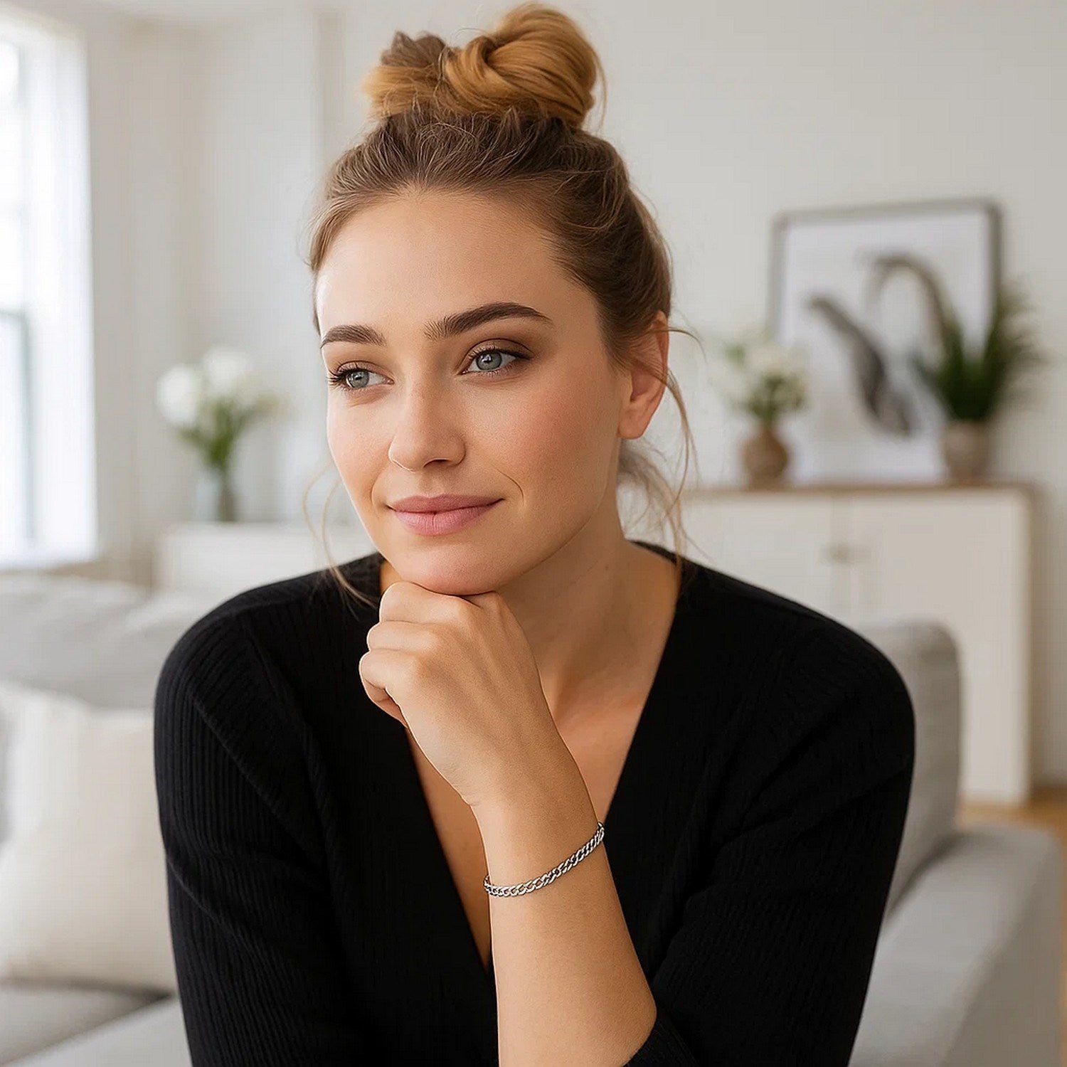 This solid curb bracelet comes in 14k white gold and has a width of 3.6 millimeters. Secured with a lobster clasp.