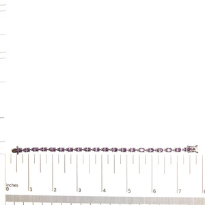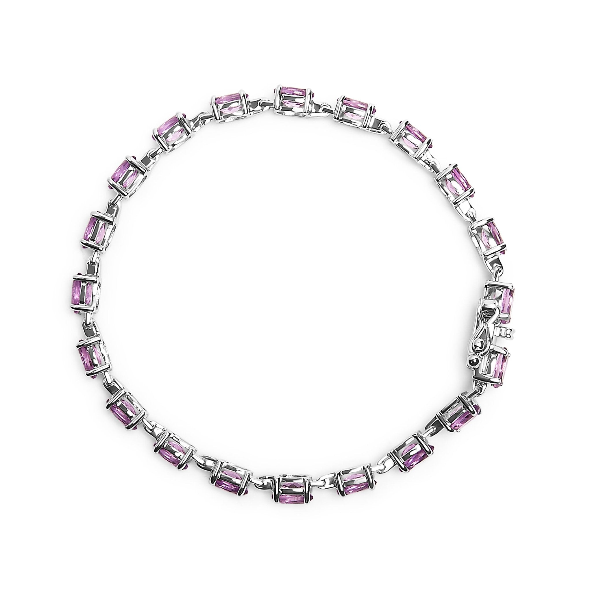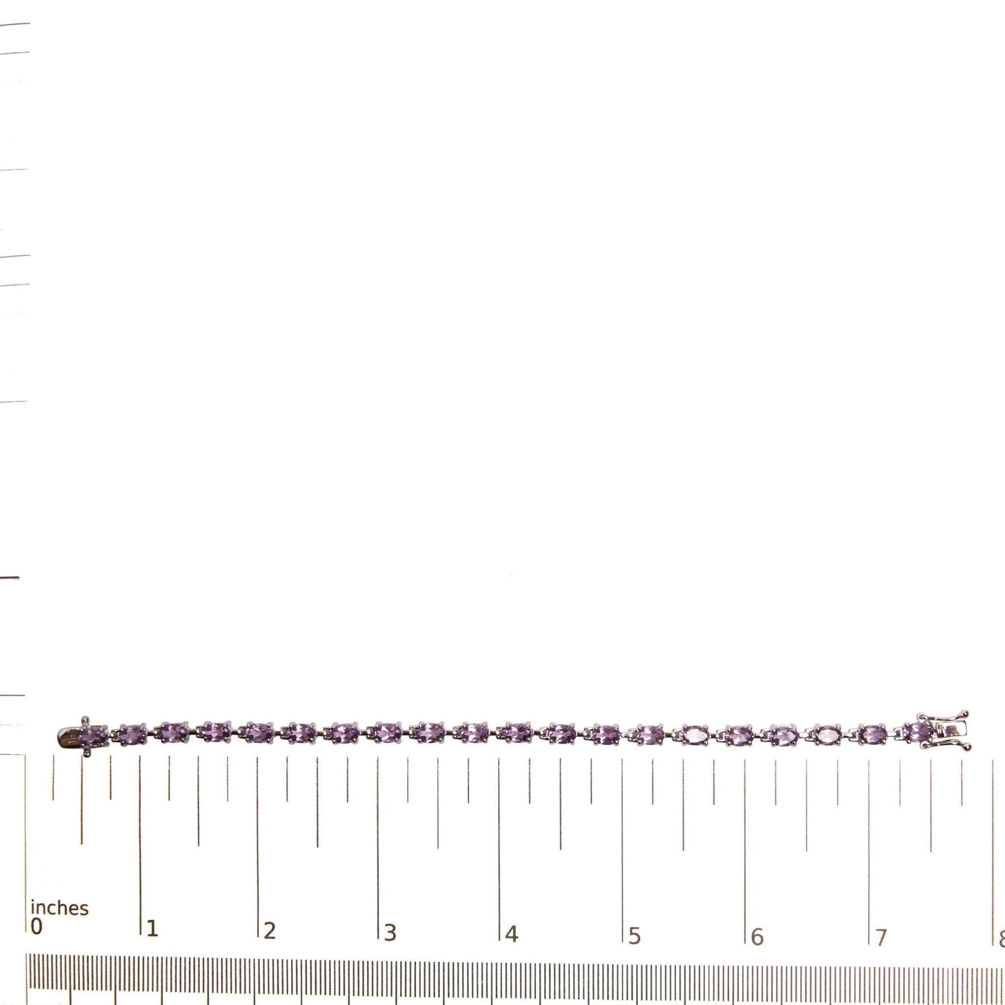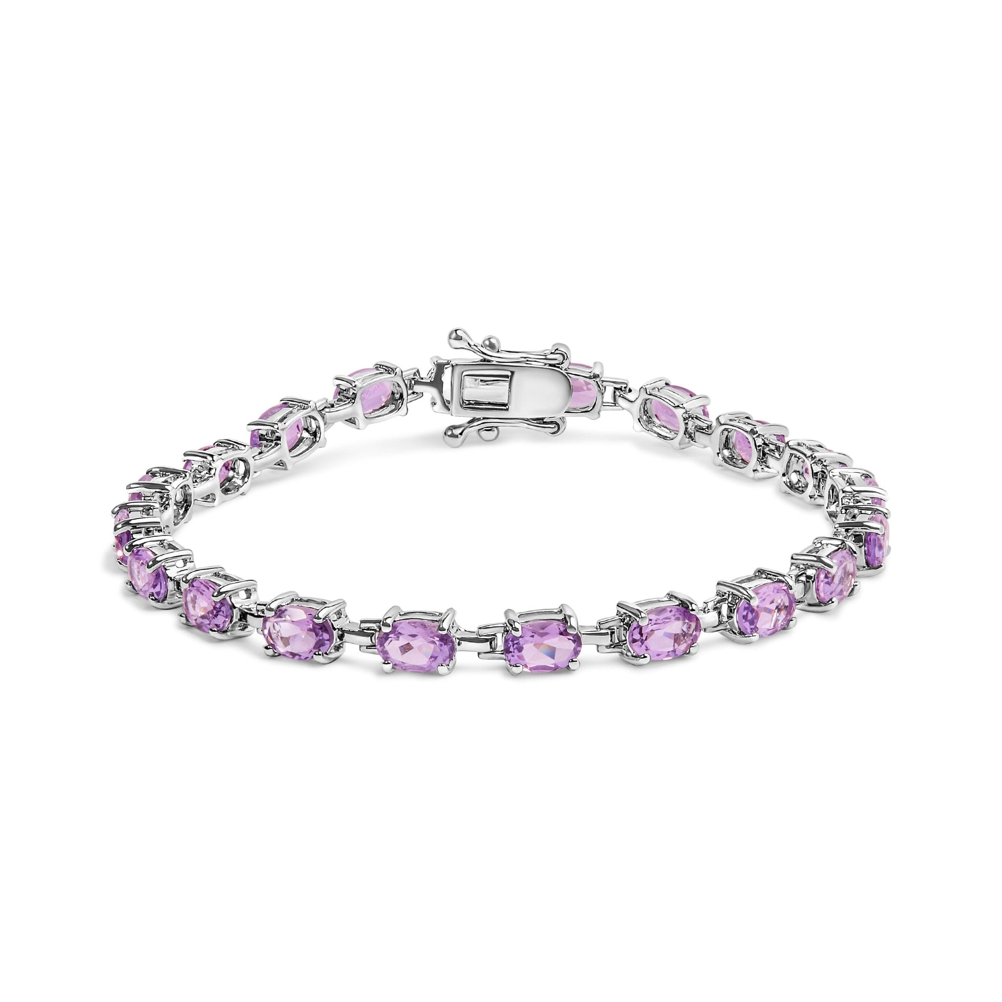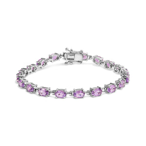 Introducing a breathtaking masterpiece that will captivate every woman's heart. Crafted with utmost precision, this .925 Sterling Silver Purple Amethyst Link Bracelet is an exquisite piece of art. The alluring oval-shaped amethyst gemstones, totaling 8 1/2 cttw, emit a mesmerizing purple hue that symbolizes elegance and royalty. Each gemstone is meticulously set in a 4-prong setting, ensuring maximum brilliance and security. With a total of 20 dazzling amethysts, this bracelet is a true testament to luxury and sophistication. The 7" inches length is perfect for any wrist size, enhancing the femininity of the wearer. Adorned with a box clasp, it guarantees both style and security. This bracelet is designed to make a statement and leave an everlasting impression. Indulge yourself or surprise a loved one with this magnificent piece, and let the enchanting allure of amethysts elevate your style to new heights.