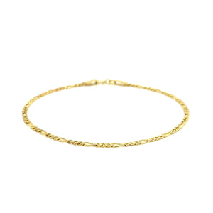 Crafted in glistening 14k yellow gold, this Figaro bracelet has a width of 1.9 millimeters and is secured with a spring ring clasp