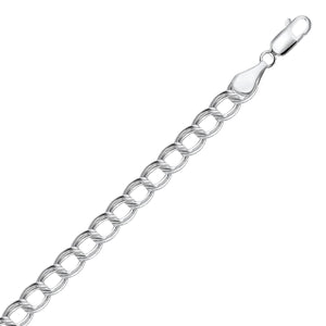 Small ridged circular links provide style and elegance to this rhodium plated sterling silver charm bracelet. A beautiful piece available in sizes 7 1/4 inches and 8 inches and secured with a lobster lock.