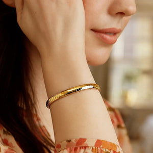 Classic omega bracelet is crafted in glistening 14k yellow gold and has a width of 6.0 millimeters. Secured with a box catch clasp.