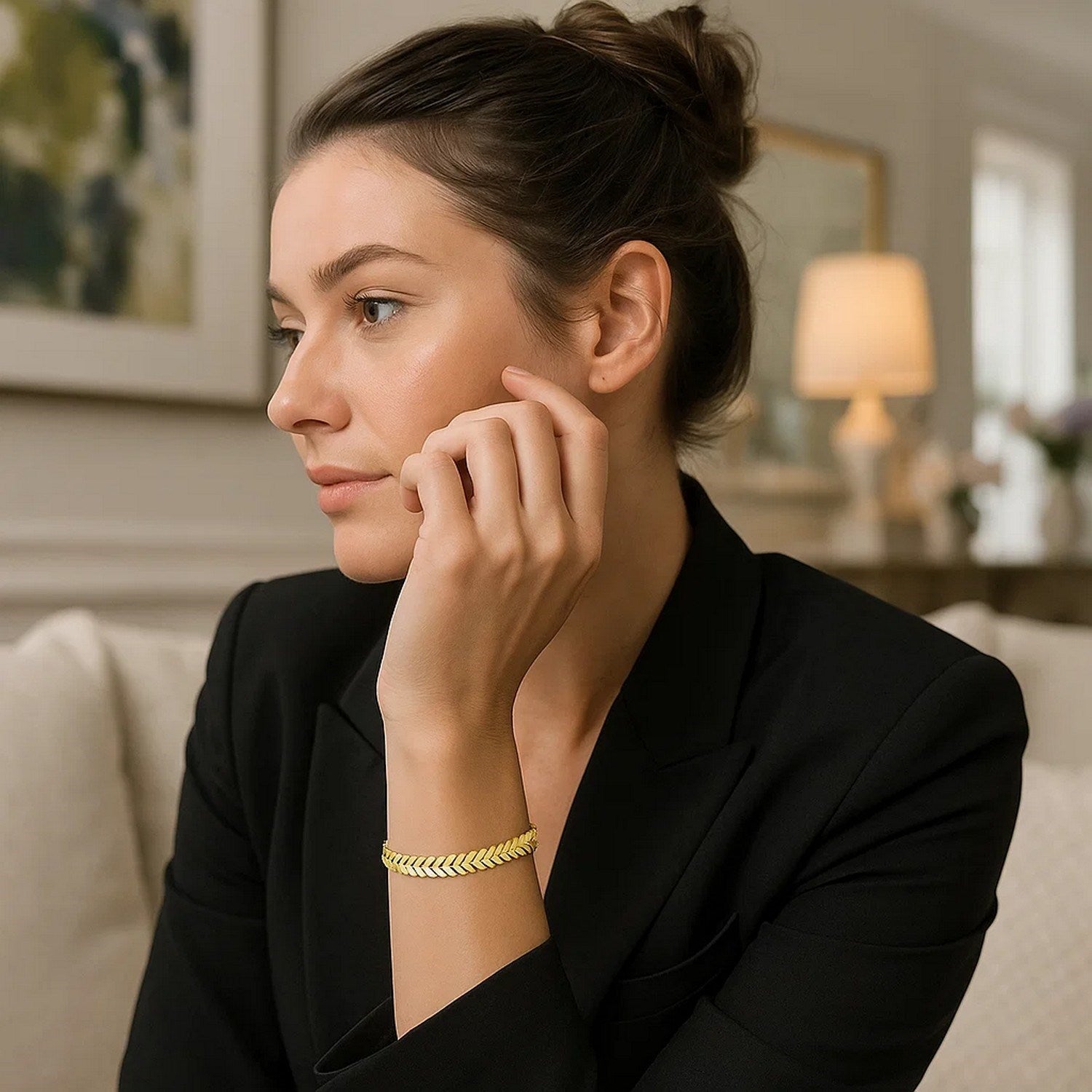 This Chevron link bracelet is beautifully crafted in 14k yellow gold with a high polish finish and closes with a large spring ring clasp. Measuring 6 mm width and available in a 7 1/2 inches length.