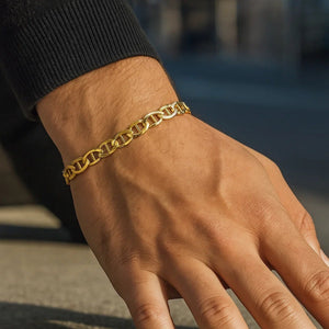 This mariner link bracelet comes in 14k yellow gold and has a width of 6.3 millimeters. Secured with a lobster clasp.