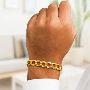 This solid curb bracelet comes in 14k yellow gold and has a width of 10.0 millimeters. Secured with a lobster clasp.