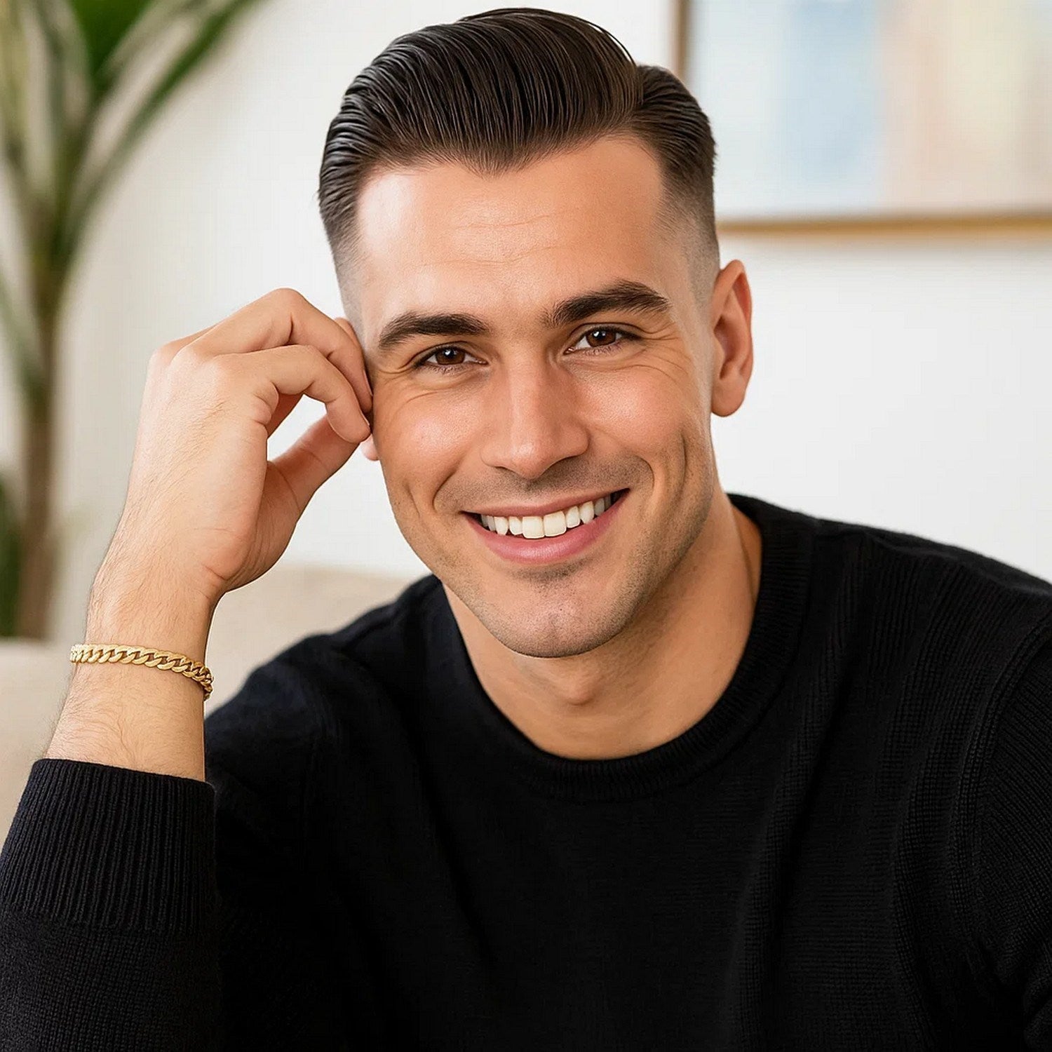 This Miami Cuban semi solid bracelet comes in 14k yellow gold and has a width of 5.3 millimeters. Secured with a lobster clasp.