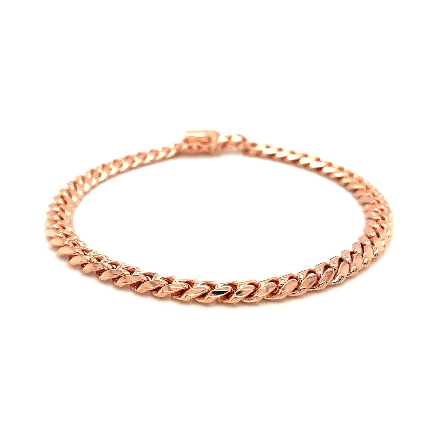 This Classic Miami Cuban solid bracelet comes in 14k rose gold and has a width of 6.0 millimeters. Secured with a box clasp.