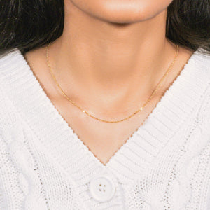 This cable chain comes in 10k yellow gold and has a width of 1.1 millimeters.
