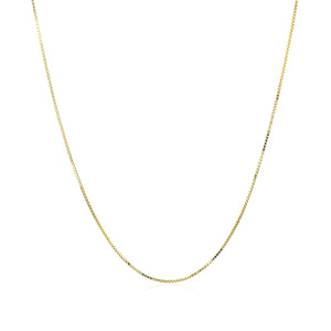This classic box chain comes in 10k yellow gold and has a width of 0.60 millimeters.