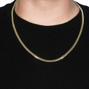 This classic Miami cuban solid chain comes in 10k yellow gold and has a width of 4.9 millimeters.