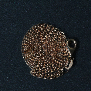 This round cable link chain comes in 14k rose gold and has a width of 1.5 millimeters.