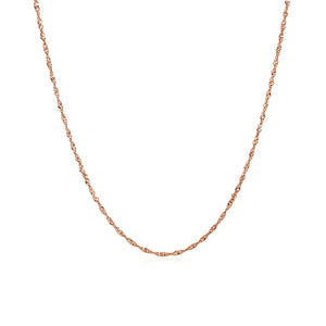 This Singapore chain comes in 14k rose gold and has a width of 1.10 millimeters.