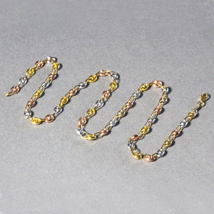 14k Tri Color Gold High Polish Puffed Mariner Link Chain (4.90 mm)