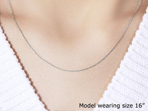 This cable link chain comes in 14k white gold and has a width of 0.50 millimeters.