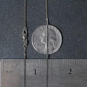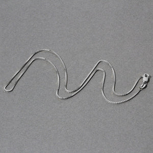 This classic box chain comes in 14k white gold and has a width of 0.85 millimeters.