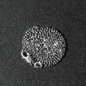 This diamond cut cable link chain comes in 14k white gold and has a width of 1.5 millimeters.