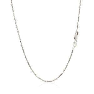 This octagonal box chain comes in 14k white gold and has a width of 1.0 millimeters.