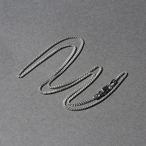 This round wheat chain comes in 14k white gold and has a width of 1.2 millimeters.