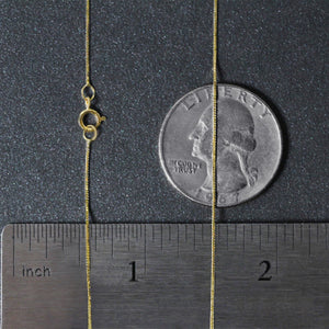 This classic box chain comes in 14k yellow gold and has a width of 0.45 millimeters.