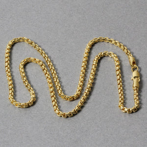 This round box chain comes in 14k yellow gold and has a width of 2.50 millimeters.