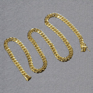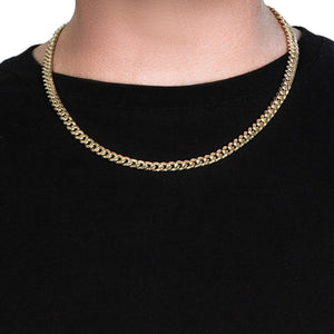 This semi solid Miami cuban chain comes in 14k yellow gold and has a width of 6.60 millimeters.