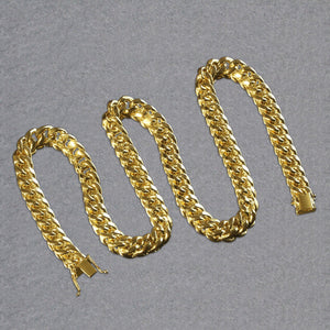 This semi solid Miami cuban chain comes in 14k yellow gold and has a width of 9.10 millimeters.