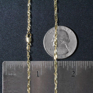 This Singapore chain comes in 14k yellow gold and has a width of 2.1 millimeters.
