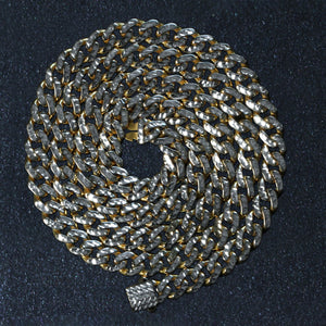 This Modern Lite Miami Cuban chain with white pave is beautifully crafted in 14k yellow gold with a high polish finish and closes with a box clasp. Measuring 6.5 mm width and available in 20 inches and 22 inches lengths.