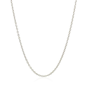 This round cable chain comes in 18k white gold and has a width of 1.5 millimeters.