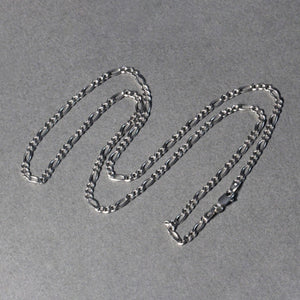 This solid Figaro chain comes in 14k white gold and has a width of 2.6 millimeters.