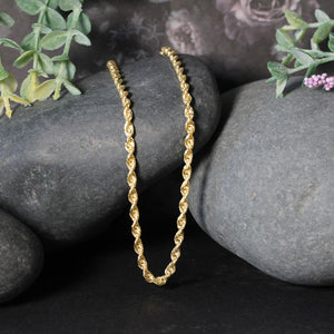 This solid diamond cut rope chain comes in 10k yellow gold and has a width of 3.0 millimeters.