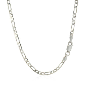 This solid Figaro chain comes in 14k white gold and has a width of 3.0 millimeters.