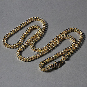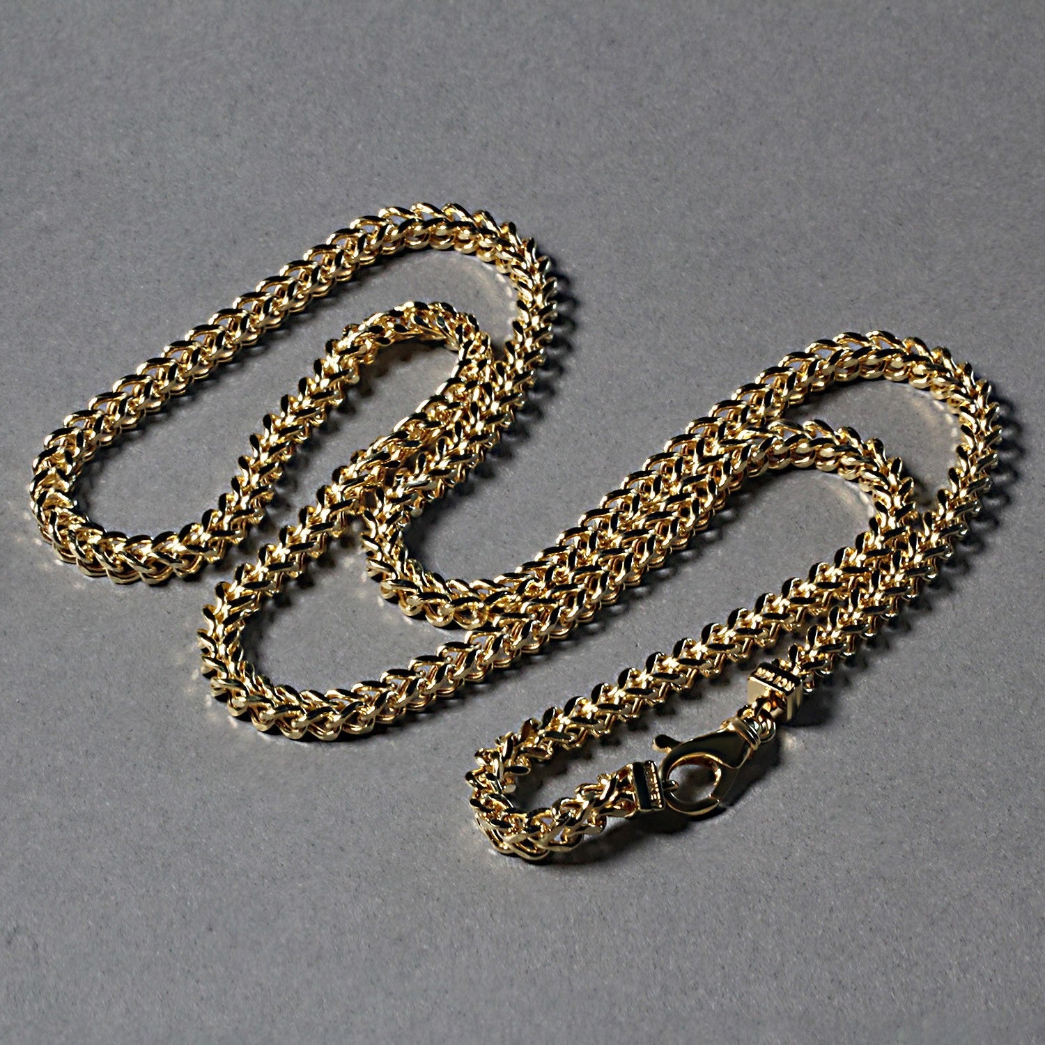 This square franco chain comes in 14k yellow gold and has a width of 3.9 millimeters.
