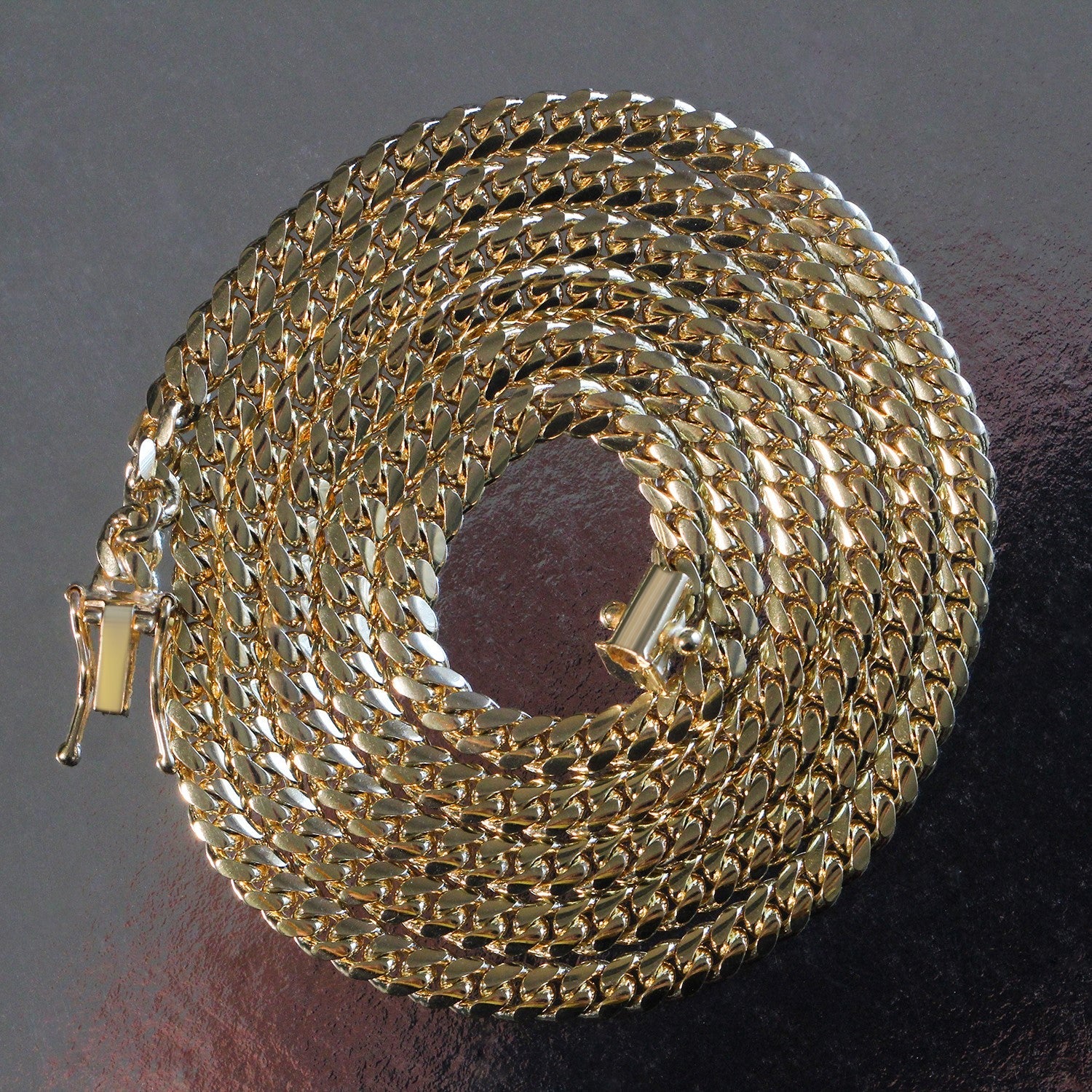 This classic solid Miami cuban chain comes in 14k yellow gold and has a width of 4.0 millimeters.