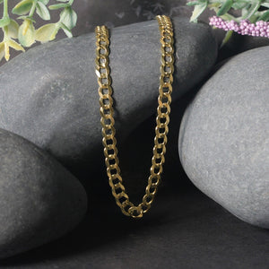 This solid curb chain comes in 14k yellow gold and has a width of 4.7 millimeters.