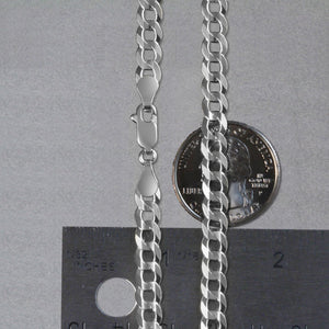 This solid curb chain comes in 14k white gold and has a width of 5.7 millimeters.