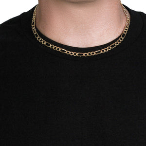 This lite Figaro chain comes in 10k yellow gold and has a width of 6.5 millimeters.