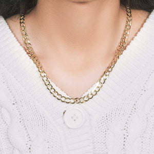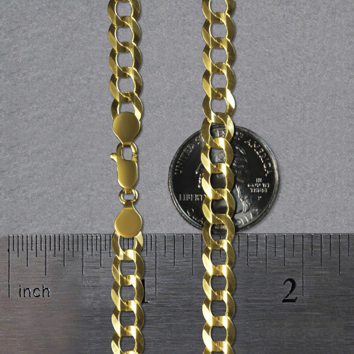 This curb link chain comes in 10k yellow gold and has a width of 7.0 millimeters.