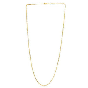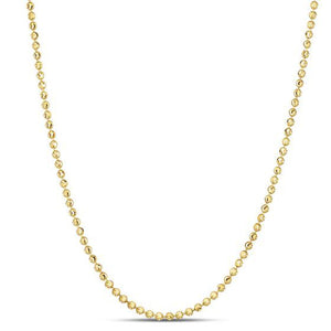 Moon cut bead chain crafted in 14k yellow gold measuring 2.0 millimeters in width. Available in lengths 16 inches, 18 inches, 20 inches and 24 inches.