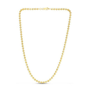 Moon cut bead chain crafted in 14k yellow gold measuring 4.0 millimeters in width. Available in lengths 16 inches, 18 inches, 20 inches, 22 inches and 24 inches.