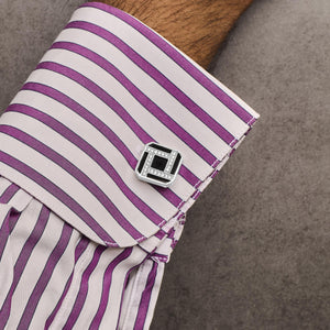 Encapsulate the quintessence of sophistication with these exquisite cufflinks, masterfully crafted from rhodium-plated 18K white gold. These treasures feature natural diamonds of F-G color and VS1-VS2 clarity, meticulously arranged in a geometric pattern that dazzles with understated elegance. The brilliance of the diamonds is strikingly offset by deep black enamel, creating a bold, contemporary contrast that captures the eye. Each cufflink, measuring approximately 3/5 of an inch in both width and length, not only complements your formal attire but enhances it, transforming any ensemble into a statement of unrivaled class. Ideal for the discerning gentleman, these cufflinks promise to be a focal point at any prestigious event, adding a touch of allure to your moments of celebration.