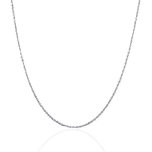 This solid diamond cut rope chain comes in 14k white gold and has a width of 1.25 millimeters.