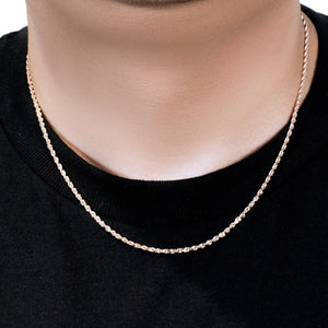 This solid diamond cut rope chain comes in 14k rose gold and has a width of 2.30 millimeters.